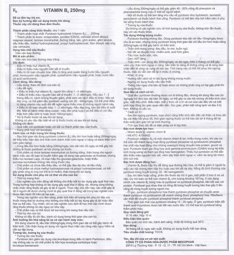 Cách dùng Thuốc Vitamin B6 250mg