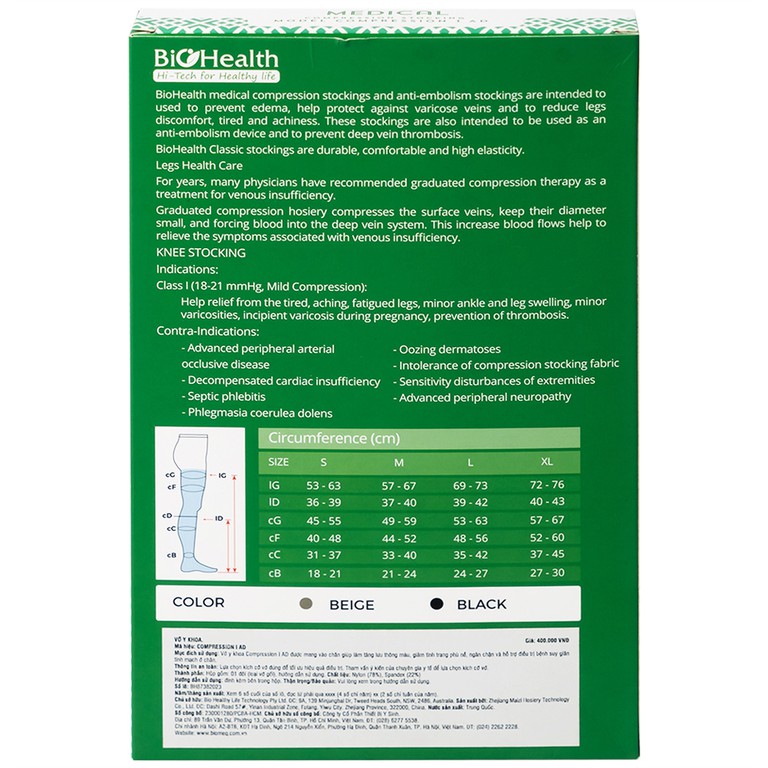 Với khả năng ngăn ngừa và hỗ trợ cho các triệu chứng bệnh giãn tĩnh mạch, vớ gối y khoa chống giãn tĩnh mạch Biohealth Compression I – màu da size M là phương pháp phòng chống và điều trị suy giãn tĩnh mạch chân hiệu quả, đơn giản, không tốn quá nhiều thời gian và công sức.