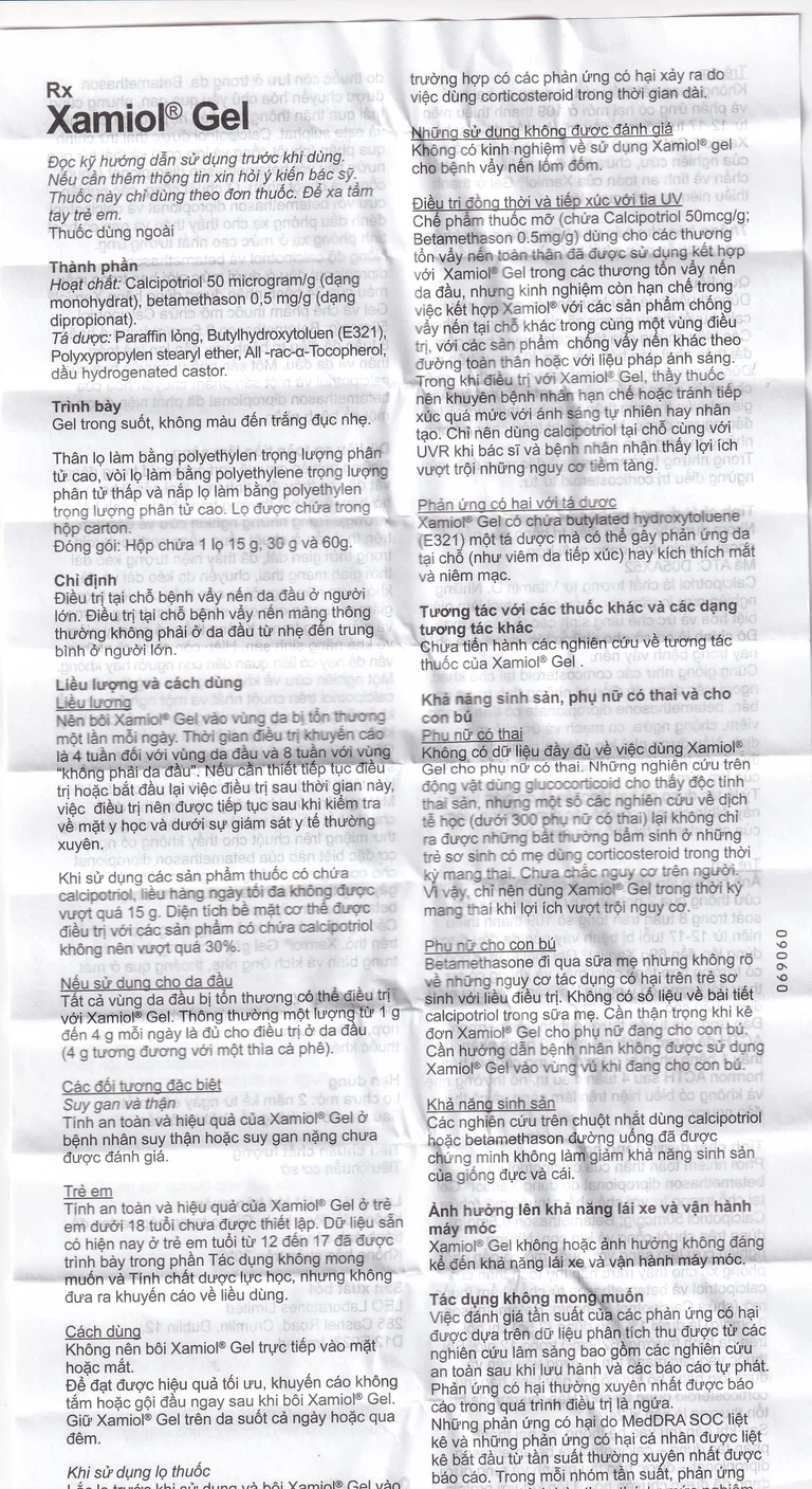 Tất cả vùng da đầu bị tổn thương có thể điều trị với Xamiol® Gel. Thông thường một lượng từ 1g đến 4g mỗi ngày là đủ cho điều trị ở da đầu (4g tương đương với một thìa cà phê).