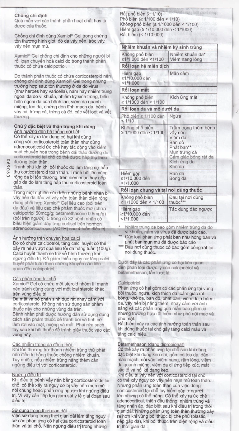 Chống chỉ định dùng Xamiol Gel trong chứng tổn thương hình giọt, đỏ da vảy nến, tróc vảy, vảy nến mụn mủ.