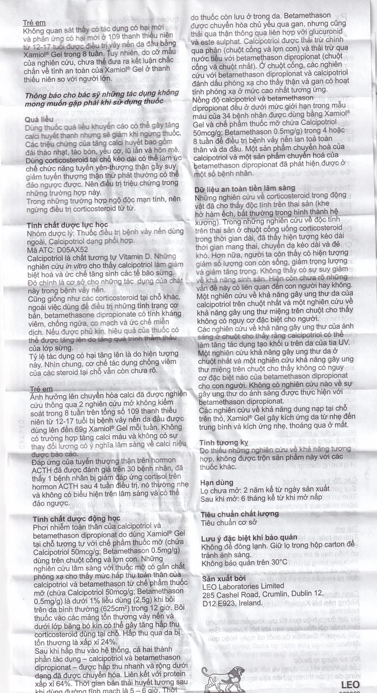 Không quan sát thấy có tác dụng có hại mới và phản ứng có hại mới ở 109 thanh thiếu niên từ 12-17 tuổi được điều trị vảy nến da đầu bằng Xamiol® Gel trong 8 tuần. Tuy nhiên, do cỡ mẫu của nghiên cứu, chưa thể đưa ra kết luận chắc chắn về tính an toàn của Xamiol® Gel ở thanh thiếu niên so với người lớn.
