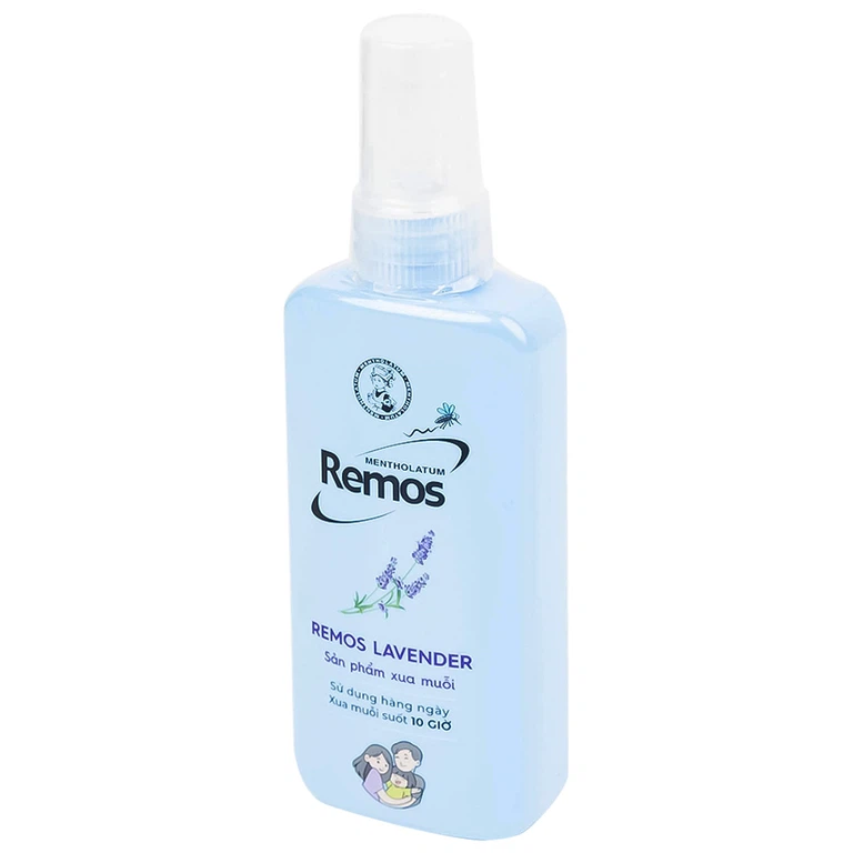 Xịt chống muỗi Remos Lavender Rohto với thành phần chính là Diethyltoluamide 15% giúp duy trì hiệu quả xua đuổi muỗi lên đến 10 tiếng.