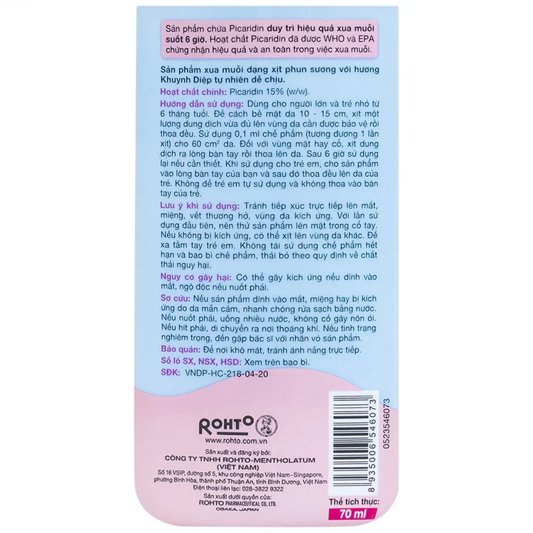 Picaridin đã nhận được chứng nhận an toàn từ WHO và EPA đối với hiệu quả xua đuổi muỗi. Tác dụng của chất này đã được kiểm chứng và được sử dụng rộng rãi trong hơn 20 năm qua trên 40 quốc gia. Hoạt chất này được các chuyên gia đánh giá là an toàn khi có thể sử dụng trực tiếp trên da nhằm mang lại hiệu quả bảo vệ tốt nhất cho trẻ em thay vì chỉ sử dụng trên quần áo. Với nồng độ 15%, Picaridin có thể bảo vệ người dùng khỏi muỗi đốt suốt 6 giờ.