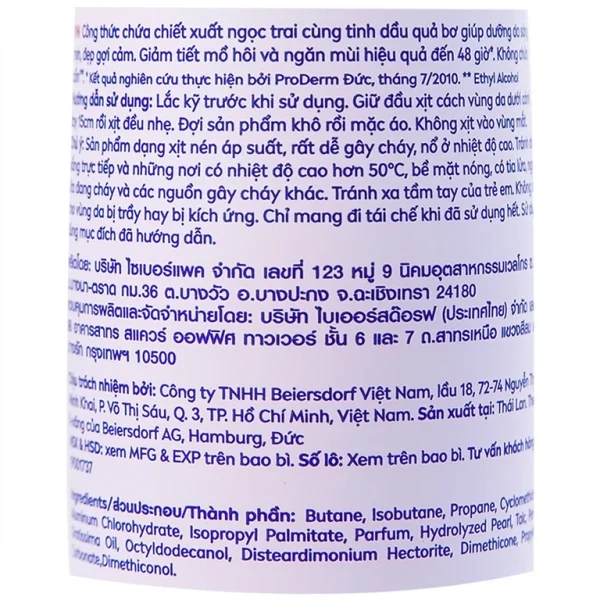 Xịt khử mùi Nivea Anti-Perspirant Pearl and Beauty được sản xuất theo công thức độc quyền của Nivea. Khi sử dụng sản phẩm, vùng da dưới cánh tay không chỉ giảm tiết mồ hôi, ngăn mùi tốt, mà còn mang đến cho các bạn nữ mùi hương dịu nhẹ và quyến rũ. Bên cạnh đó, việc kiểm soát được lượng mồ hôi tiết ra của cơ thể còn giúp bạn luôn cảm thấy khô thoáng, thoải mái khi hoạt động ngoài trời.