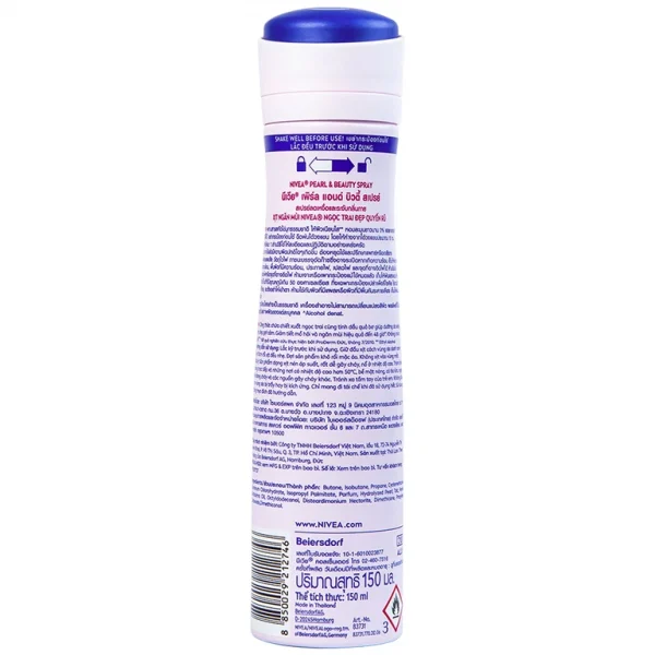 Xịt khử mùi Nivea Anti-Perspirant Pearl and Beauty 150ml thuộc dòng sản phẩm khử mùi hôi cơ thể do Nivea nghiên cứu và phát triển. Nivea là một cái tên không còn xa lạ đối với nhiều tín đồ yêu thích làm đẹp. Thương hiệu mỹ phẩm này trực thuộc tập đoàn Beiersdorf AG Hamburg (Đức). Nivea Anti-Perspirant Pearl and Beauty có công thức chiết xuất ngọc trai và lá thìa canh, giúp ngăn tiết mồ hôi hiệu quả, giảm mùi khó chịu và làm sáng mịn vùng da dưới cánh tay. Đồng thời, sản phẩm còn giúp làm mềm lông, hạn chế tình trạng đau rát khi nhổ hoặc cạo.