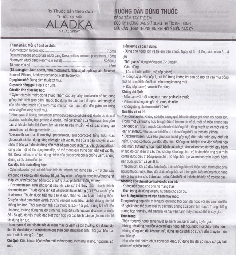 Trước khi sử dụng thuốc xịt mũi Aladka bạn cần đọc kỹ hướng dẫn sử dụng và tham khảo thông tin bên dưới.