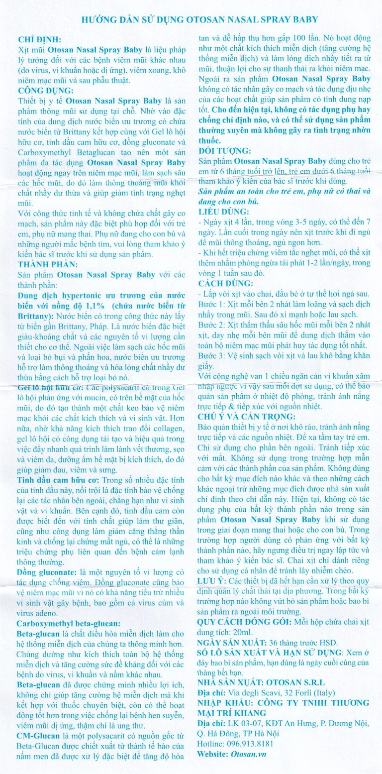 Xịt mũi Otosan Nasal Spray Baby 20ml hỗ trợ viêm mũi do virus, vi khuẩn, dị ứng