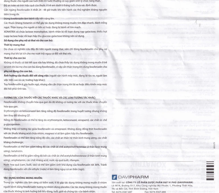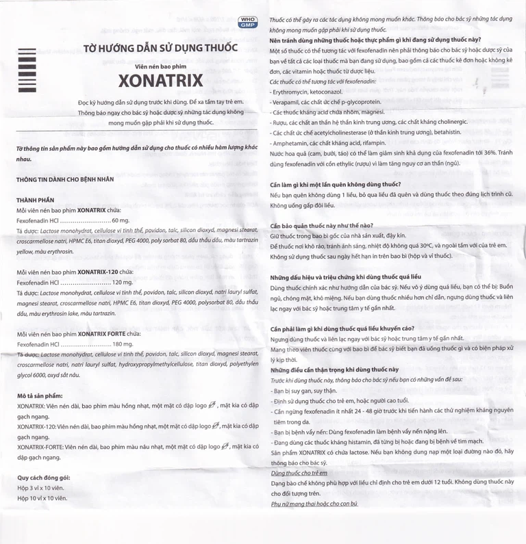 Xonatrix có chứa lactose monohydrat, bệnh nhân bị rối loạn dung nạp galactose, thiếu hụt lapp lactase hoặc rối loạn hấp thu glucose – galactose không nên sử dụng.