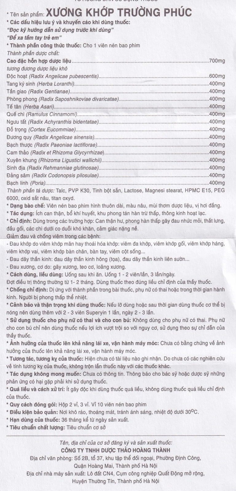 Công dụng của Thuốc Xương Khớp Trường Phúc