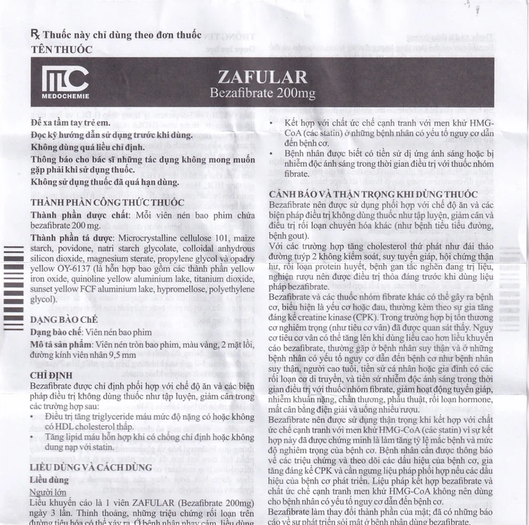 Liều dùng của bezafibrate cho trẻ em và thanh thiếu niên chưa được thiết lập.