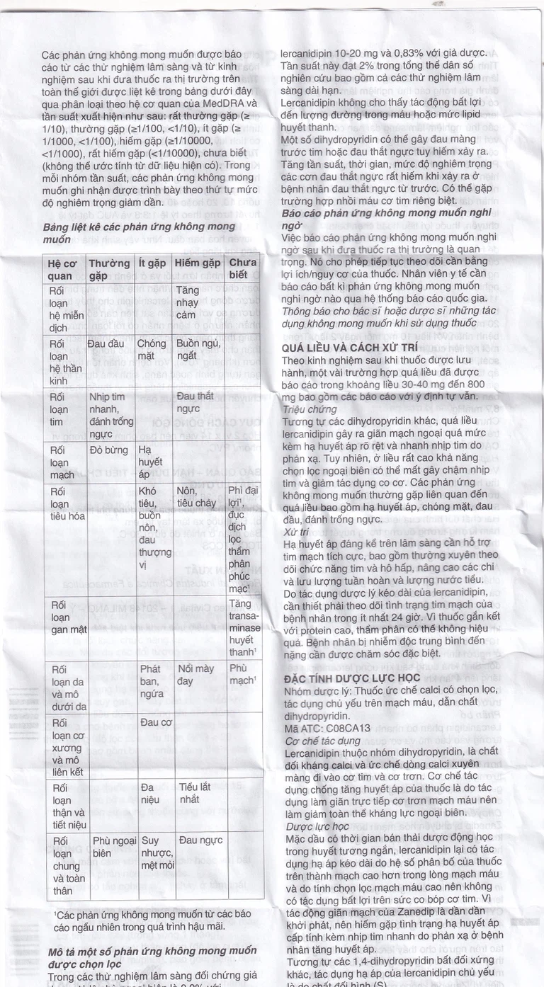 Khi sử dụng thuốc Zanedip® 10 mg, bạn có thể gặp các tác dụng không mong muốn (ADR).