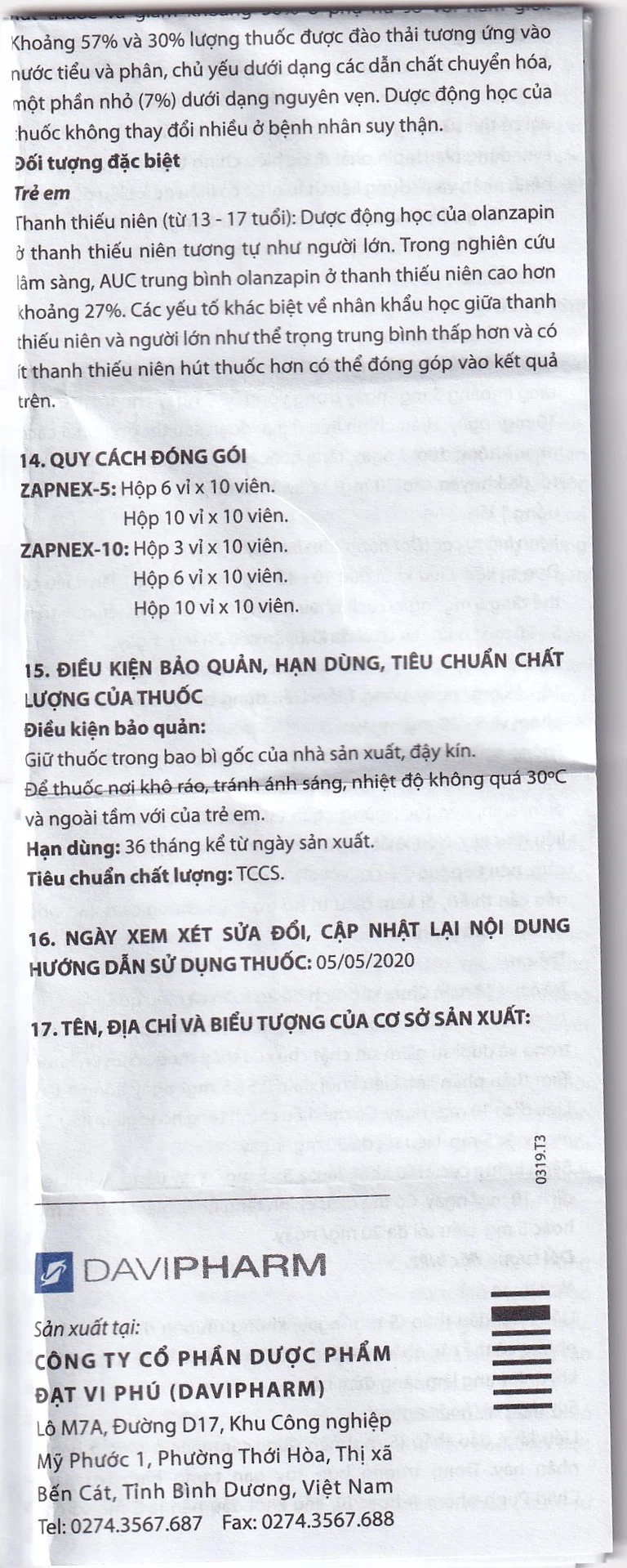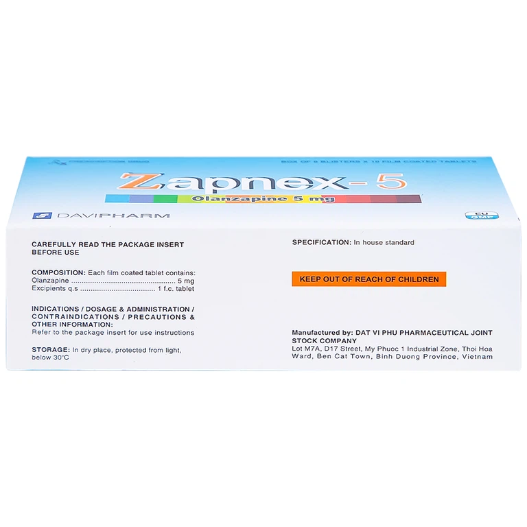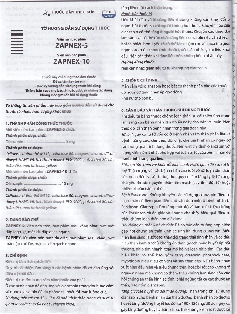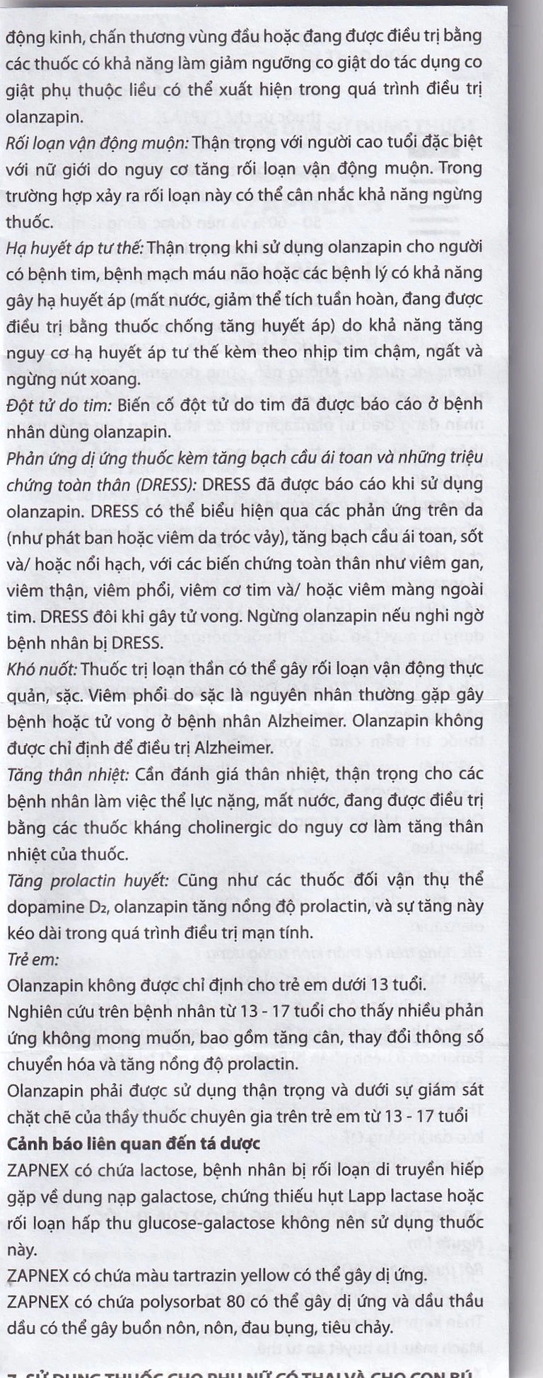 Zapnex 5 mg có chứa lactose, bệnh nhân bị rối loạn di truyền hiếm gặp về dung nạp galactose, chứng thiếu hụt lapp lactase hoặc rối loạn hấp thu glucose – galactose không nên sử dụng thuốc này.