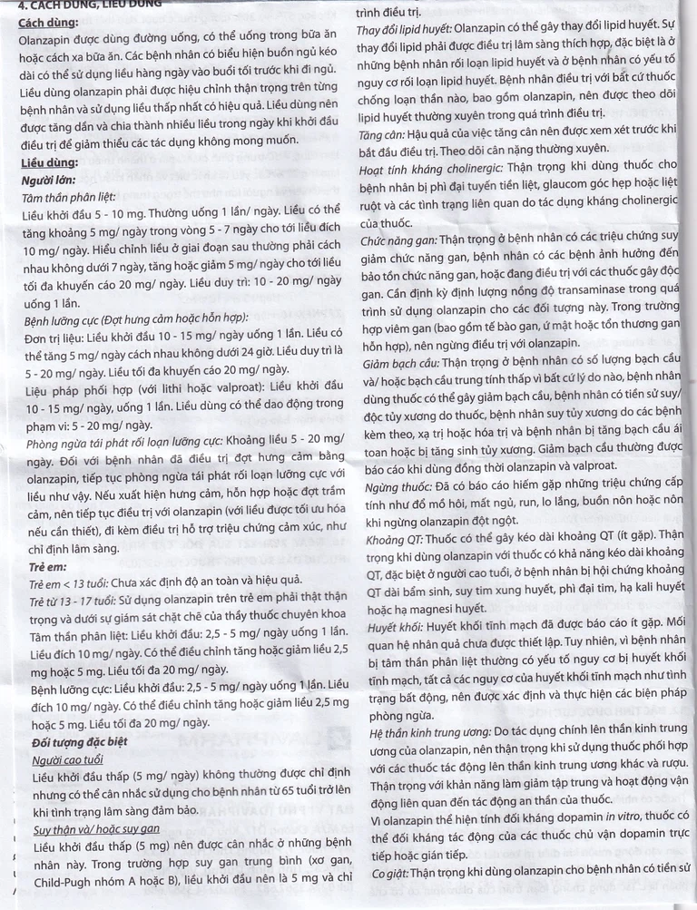 Trẻ từ 13 – 17 tuổi: Sử dụng olanzapm trên trẻ em phải thật thận trọng và dưới sự giám sát chặt chẽ của thầy thuốc chuyên khoa.