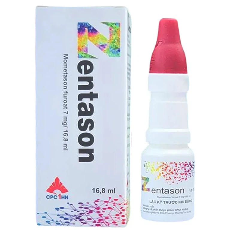 Thuốc Zentason là sản phẩm của Công ty Cổ phần Dược phẩm CPC1 Hà Nội với thành phần chính là Mometasone Furoate. Thuốc Zentason có tác dụng điều trị triệu chứng viêm mũi dị ứng theo mùa hoặc quanh năm, điều trị polyp mũi, hỗ trợ điều trị viêm xoang.