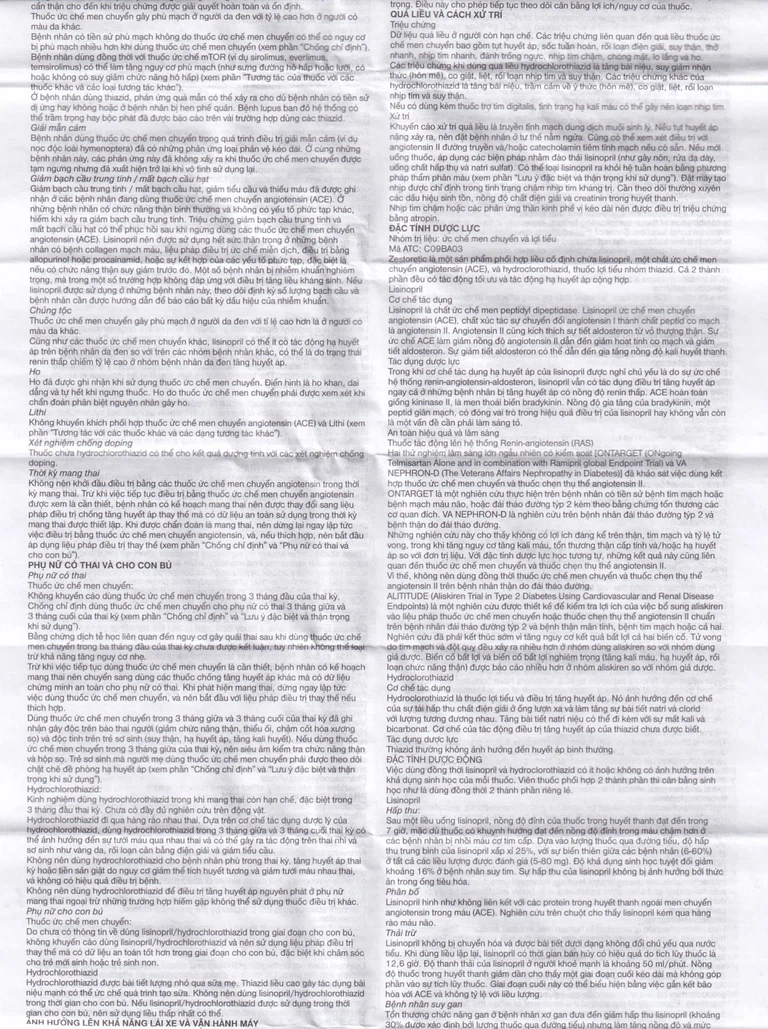 - Bệnh nhân điều trị trước đó bằng thuốc lợi tiểu: Nên ngưng các thuốc lợi tiểu khoảng 2-3 ngày trước khi khởi đầu với lisinopri/ hydrochlorothiazide, nếu không nên bắt đầu với liều 5 mg lisinopril đơn thuần.