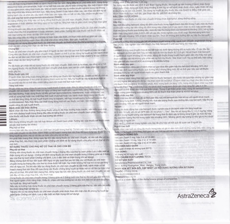 Người ta chưa biết Zestril có được bài tiết qua sữa mẹ hay không. Không nên dùng Zestril ở phụ nữ đang cho con bú.